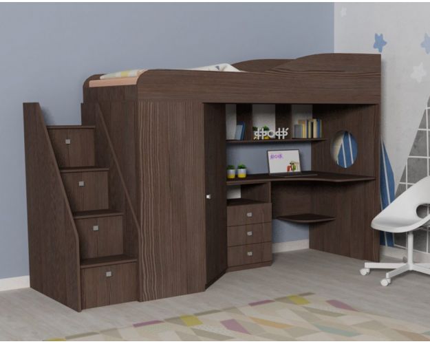 Кровать-чердак Кадет-1 с универсальной лестницей Бодего/Бодего