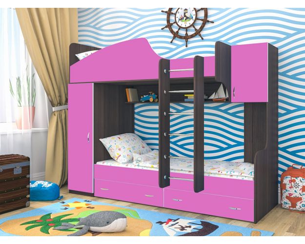 Кровать двухъярусная Юниор-2 Бодего/Розовый