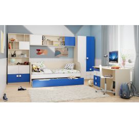 Коллекция мебели с акцентами небесно-голубого цвета понравится маленькому спортсмену, исследователю или музы..