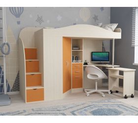 [name] => Кровать-чердак Юниор-4 Дуб молочный/Оранжевый
