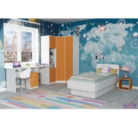 [name] => Кровать двухъярусная Юниор-1 с бортиком Бодего/Белый/Оранжевый